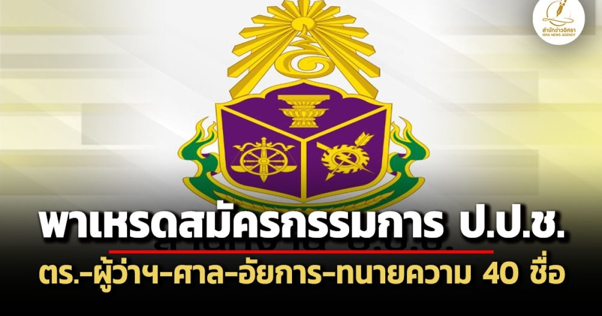 เปิด 40 รายชื่อ สมัครกรรมการป้องกันและปราบปรามทุจริตแห่งชาติ แทน 3 ตำแหน่งที่ว่าง พล.ต.อ.สมพงษ์ ชิงดวง อดีตผู้บัญชาการตำรวจตรวจคนเข้าเมือง บิ๊กจ้าว-พล.ต.ท.ธิติ แสงสว่าง ผู้บัญชาการตำรวจนครบาล นายจิรุตม์ วิศาลจิตร อธิบดีกรมขนส่งทางบก เริงศักดิ์ วิริยะชัยวงศ์ ผู้พิพากษาศาลฎีกา พาเหรดสมัคร กรรมการ ป.ป.ช.