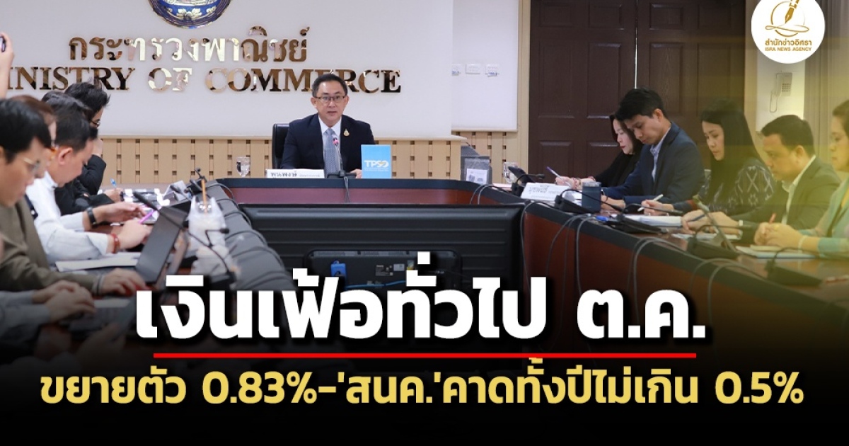 ‘พาณิชย์’ เผยอัตราเงินเฟ้อทั่วไป ต.ค.67 ขยายตัว 0.83% หลังราคา ‘ผักสด-ผลไม้-ดีเซล-ค่าไฟฟ้า’ สูงขึ้น ขณะที่เฉลี่ย 10 เดือนแรก โต 0.26% คาดเงินเฟ้อทั้งปี 67 ไม่เกิน 0.5%