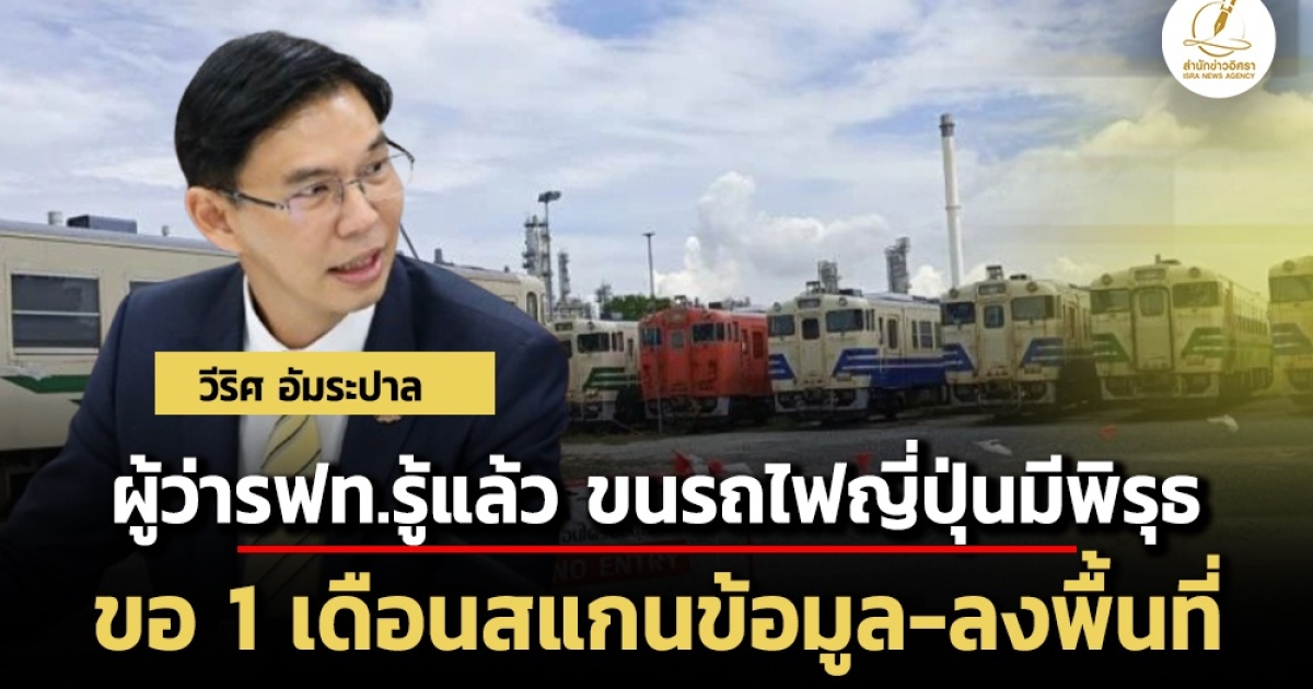 ‘วีริศ’ ทราบเรื่องขนรถไฟญี่ปุ่นผิด TOR แล้ว ขอเวลา 1 เดือน สแกนข้อมูลรายละเอียด พร้อมเผยอาขลงพื้นที่ไปดู ยังไม่ฟันธงใครถูก-ผิด