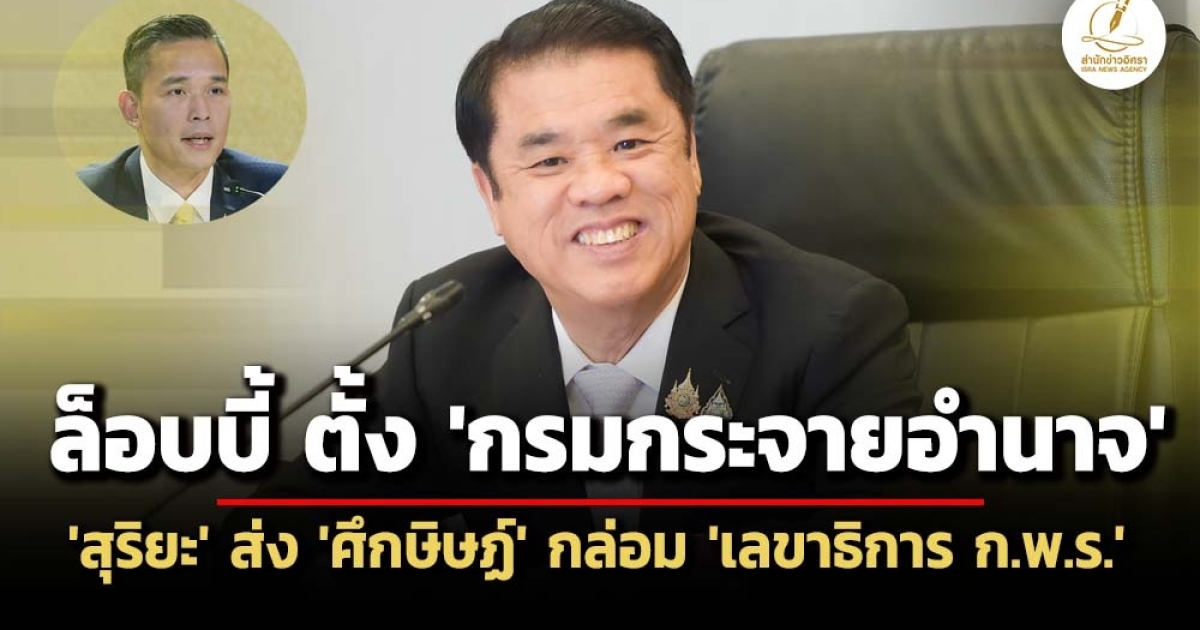 ‘สุริยะ จึงรุ่งเรืองกิจ’ รองนายกฯ-รมว.คมนาคม เตรียมนั่ง หัวโต๊ะ ‘บอร์ดกระจายอำนาจ’ ดัน ร่าง ‘พ.ร.บ.กระจายอำนาจองค์กรปกครองส่วนท้องถิ่น’ เข้าครม. ส่ง ‘ศึกษิษฏ์ ศรีจอมขวัญ’ รองเลขาธิการนายกฯ ฝ่ายการเมือง ล็อบบี้ ‘อ้อนฟ้า เวชชาชีวะ’ เลขาธิการ ก.พ.ร. ตั้ง ‘กรมกระจายอำนาจ’