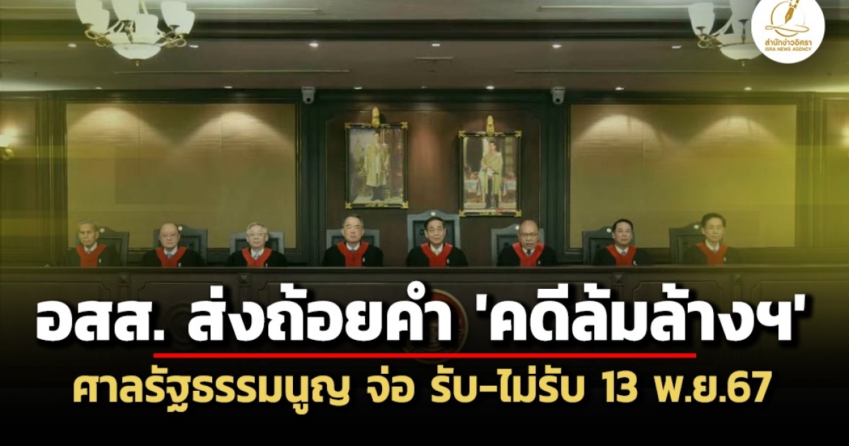 อัยการสูงสุด ลงนาม ส่งข้อมูลการให้ถ้อยคำเพิ่มเติมต่อศาลรัฐธรรมนูญ กรณีคำร้อง ทักษิณ ชินวัตร-พรรคเพื่อไทย ล้มล้างการปกครองฯ ศาลรัฐธรรมนูญ จ่อ พิจารณารับ-ไม่รับคำร้อง 13 พ.ย.นี้-สัปดาห์ถัดไป