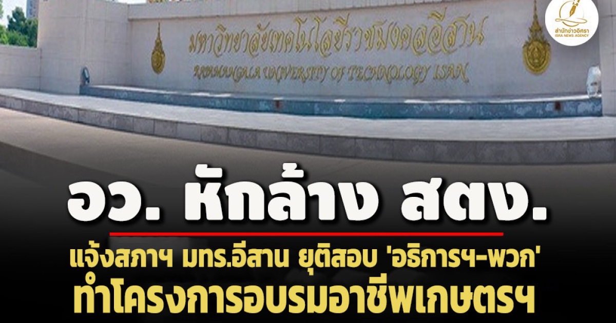 อว.ทำหนังสือแจ้งสภาฯ มทร.อีสาน ยุติสอบสวน อธิการบดี-พวก กรณีถูก สตง.ชี้ข้อบกพร่องจัดทำโครงการอบรมส่งเสริมพัฒนายกระดับทักษะอาชีพภาคเกษตรกรรม ปี 64 เหตุผู้ถูกกล่าวหาไม่ได้กระทำผิดวินัย - แต่เปิดช่องตามระเบียบให้ทบทวนสั่งการใหม่ให้ถูกต้องเหมาะสมได้