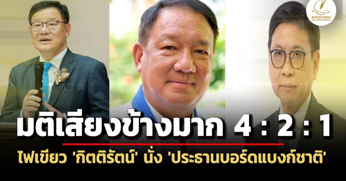 เปิดผลการลงมติคัดเลือกประธานบอร์ด ธปท. เสียงข้างมาก 4 เสียง เทให้ ‘กิตติรัตน์ ณ ระนอง’ อดีตรองนายกฯ-รมว.คลัง ยุครัฐบาลยิ่งลักษณ์ ดำรงตำแหน่ง ‘ประธานบอร์ดแบงก์ชาติ’ ส่วน แคนดิเดตอีก 2 คน ‘กุลิศ สมบัติศิริ’ อดีตปลัดพลังงาน 2 เสียง – ‘สุรพล นิติไกรพจน์’ นายกสภามหาวิทยาลัยธรรมศาสตร์ 1 เสียง พิชัย เผย ยังไม่ได้รับรายชื่อ ยัน แบงก์ชาติยังมีความเป็นอิสระ