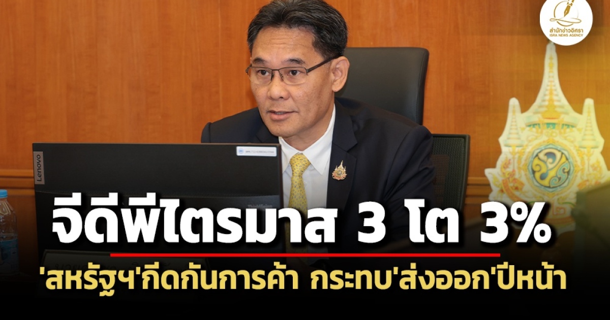 ‘สศช.’ เผยตัวเลขจีดีพีไตรมาส 3/67 เติบโต 3% เร่งตัวจากไตรมาสก่อน จาก ‘การบริโภค-การลงทุน-ภาคท่องเที่ยว’ ที่ขยายตัวได้ดี คาดทั้งปี 2567 เศรษฐกิจไทยขยายตัว 2.6% ส่วนปีหน้าโต 2.3-3.3% พร้อมจับตาผลกระทบนโยบาย ‘กีดกันทางการค้า’ ของสหรัฐฯ แนะรัฐเร่งเบิกจ่าย ‘ลงทุน’ บรรเทาผลกระทบส่งออกส่อร่วง