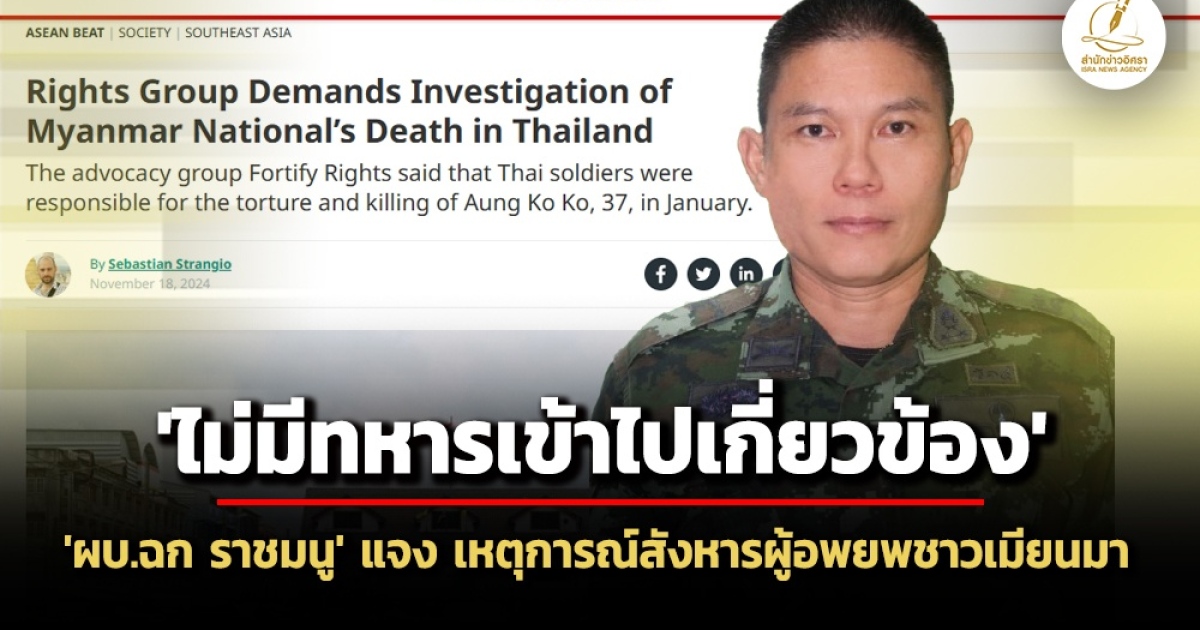 สำนักข่าวอิศรา (www.isranew.org) รายงานว่า จากกรณีสำนักข่าว The Diplomat รายงานว่ากลุ่มสิทธิมนุษยชนได้ออกมาเรียกร้องให้ทางการไทยดำเนินการสอบสวนทหารไทย ว่าอาจจะมีบทบาทในการสังหารผู้อพยพชาวเมียนมาที่พรมแดนเมื่อช่วงต้นปี หลังจากที่มีการเผยแพร่รายงานอ้างว่าทหารเหล่านี้ทรมานและทุบตีนายออง โค โค (Aung Ko Ko) ชาวเมียนมา ผู้ที่อาศัยอยู่ที่หมู่บ้านบ้านใต้ จ.ตาก และเสียชีวิตในเวลาต่อมา