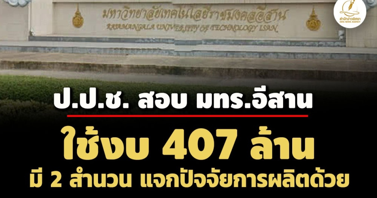 - เบื้องลึก! สตง.สอบมทร.อีสาน ใช้งบ 407 ล.มีเบิกเงินอบรมเท็จเสียหาย 30 ล.- ส่ง ป.ป.ช.ด้วย