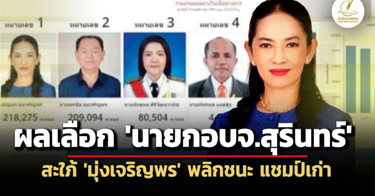 สำนักข่าวอิศรา (www.isranews.org) รายงานว่า วันที่ 23 พฤศจิกายน 2567 มีการเลือกตั้งนายกองค์การบริหารส่วนจังหวัด (อบจ.) สุรินทร์ โดยสำนักงานประชาสัมพันธ์จังหวัดสุรินทร์ ได้รายงานผลการนับคะแนนอย่างไม่เป็นทางการแบบเรียลไทม์ก่อนจะสิ้นสุดในเวลา 23.30 น. ผลการเลือกตั้งปรากฏว่านางธัญพร มุ่งเจริญพร ผู้สมัครนายกอบจ.สุรินทร์ หมายเลข 1 ที่ได้รับคะแนนเป็นลำดับที่ 1 จำนวน 218,275 คะแนน เอาชนะ นายพรชัย มุ่งเจริญพร อดีตนายกอบจ.สุรินทร์ ผู้สมัครนายกอบจ.สุรินทร์ หมายเลข 2 ลำดับที่ 2 ที่ได้คะแนน จำนวน 209,094 คะแนน