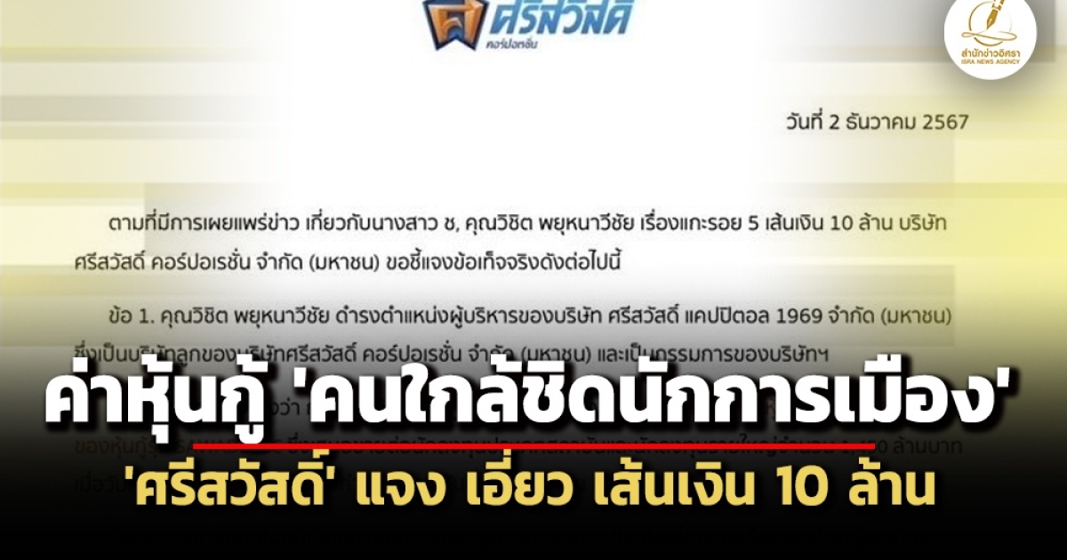ตามที่มีการเผยแพร่ข่าว เกี่ยวกับนางสาว ช, คุณวิชิต พยุหนาวีชัย เรื่องแกะรอย 5 เส้นเงิน 10 ล้าน บริษัท ศรีสวัสดิ์ คอร์ปอเรชั่น จำกัด (มหาชน) ขอชี้แจงข้อเท็จจริงดังต่อไปนี้