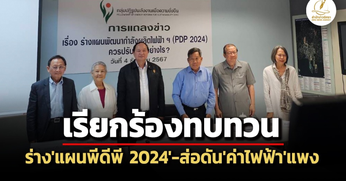 ‘กลุ่มปฏิรูปพลังงานฯ’ เรียกร้อง ‘นายกฯ’ ทบทวน ‘ร่างแผนพีดีพี 2024’ หลังตัวเลข ‘พยากรณ์’ ความต้องการไฟฟ้าฯสูงเกินจริง ดันค่าไฟฟ้า 'แพง’ จี้ปรับปรุง ‘โครงสร้างกิจการไฟฟ้า’ ให้มีการแข่งขันเสรี