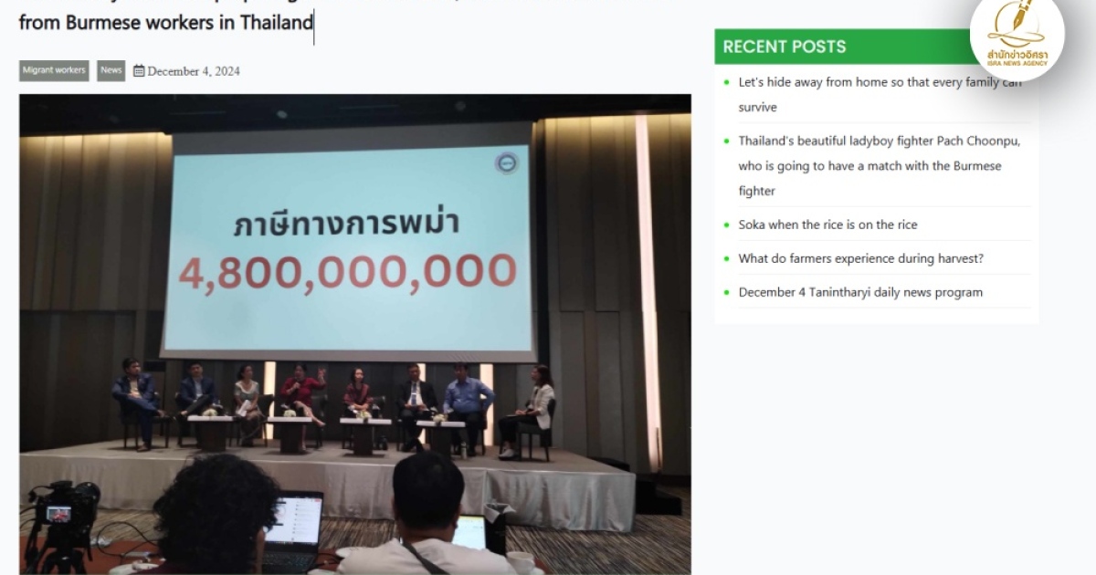 สำนักข่าวอิศรา (www.isranews.org) รายงานข่าวเกี่ยวกับแรงงานเมียนมาในไทยอ้างอิงจากสำนักขาวทวายวอทช์ของเมียนมาว่าสถานทูตของสภาทหารเมียนมาวางแผนว่าจะได้รับเงินภาษีเกือบ 5 พันล้านบาท จากแรงงานเมียนมาที่มาถึงประเทศไทย เมื่อใบอนุญาตแรงงานของพวกเขาได้รับการต่ออายุ