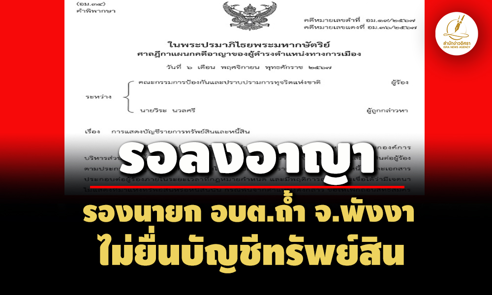 ให้พ้นตำแหน่ง! รองนายก อบต.น้ำผุด จ.สตูล จงใจไม่ยื่นบัญชีฯ คุก 2 เดือน รอลงโทษ
