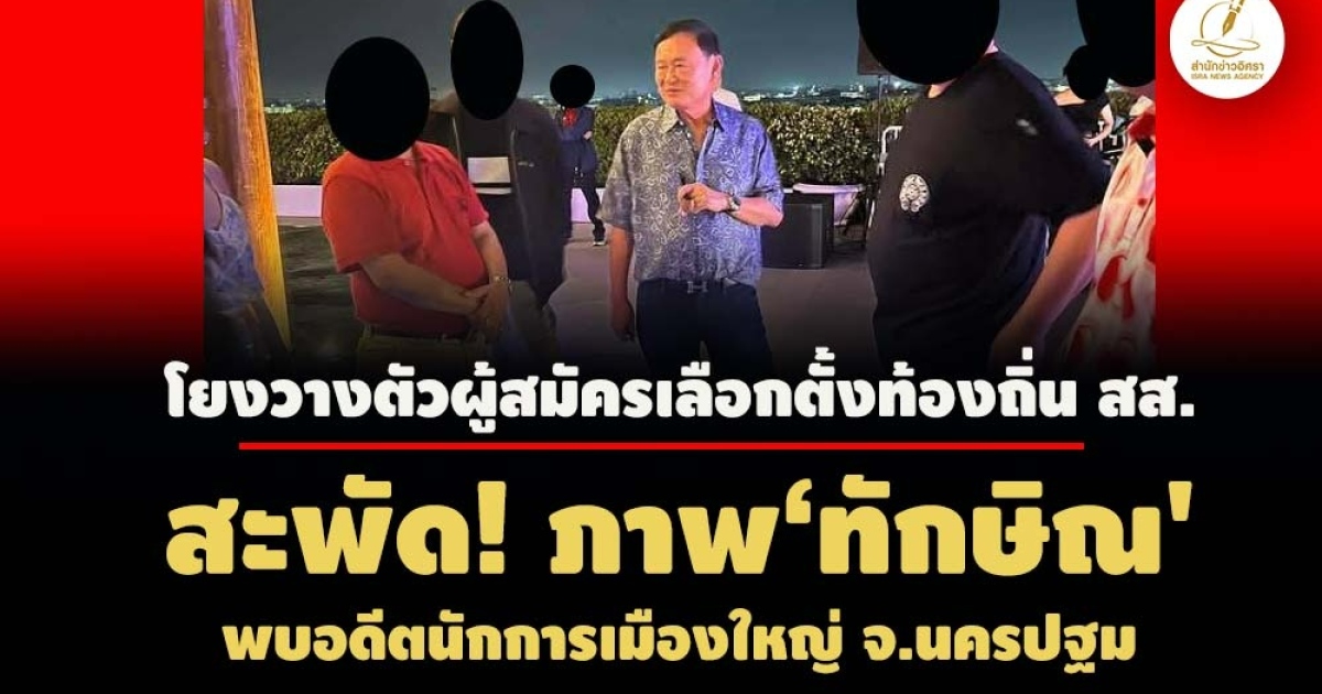 สำนักข่าวอิศรา (www.isranews.org) รายงานว่า เมื่อเร็ว ๆ นี้ ในแวดวงนักธุรกิจมีการส่งต่อเผยแพร่ภาพการพบกันของนายทักษิณ ชินวัตร อดีตนายกรัฐมนตรี บิดา น.ส.แพทองธาร ชินวัตร นายกรัฐมนตรี กับอดีตนักการเมืองใหญ่รายหนึ่งของจังหวัดนครปฐมบนชั้นดาดฟ้าโรงแรมแห่งหนึ่งใน จ.นครปฐม โดยมีนายตำรวจระดับสูงของจังหวัด นายตำรวจระดับสูงของสำนักงานตำรวจภูธรภาค และนักธุรกิจเจ้าของเจ้าของสถานที่ปรากฎอยู่ในภาพดังกล่าวด้วย