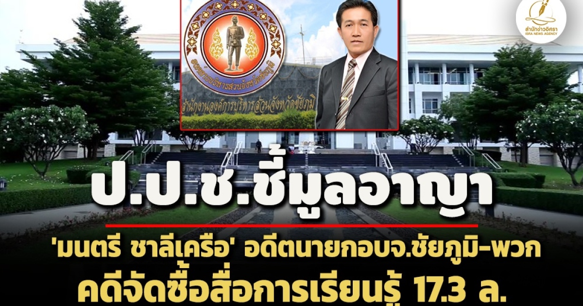 - ปิดสำนวนสอบ'อิศรา'!คดีจัดซื้ออุปกรณ์เรียน อบจ.ชัยภูมิ 100ล. สตง. ส่งเรื่องถึง ป.ป.ช.แล้ว