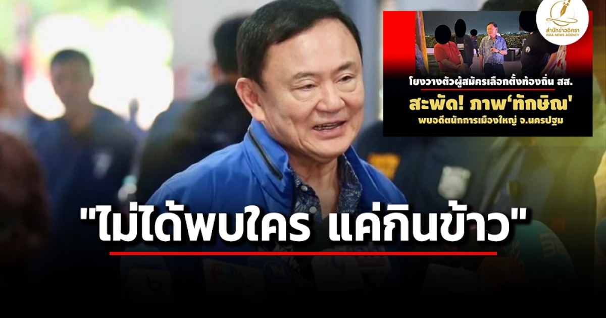 สำนักข่าวอิศรา (www.isranews.org) รายงานว่า วันที่ 13 ธันวาคม 2567 จากกรณีที่สำนักข่าวนำเสนอภาพนายทักษิณ ชินวัตร อดีตนายกรัฐมนตรีและบิดาของนางสาวแพทองธาร ชินวัตร นายกรัฐมนตรีคนปัจจุบัน พบกับอดีตนักการเมืองใหญ่รายหนึ่งของจังหวัดนครปฐมบนชั้นดาดฟ้าโรงแรมแห่งหนึ่งใน จ.นครปฐม โดยมีนายตำรวจระดับสูงของจังหวัด นายตำรวจระดับสูงของสำนักงานตำรวจภูธรภาค และนักธุรกิจเจ้าของเจ้าของสถานที่ปรากฎอยู่ในภาพดังกล่าวด้วยนั้น