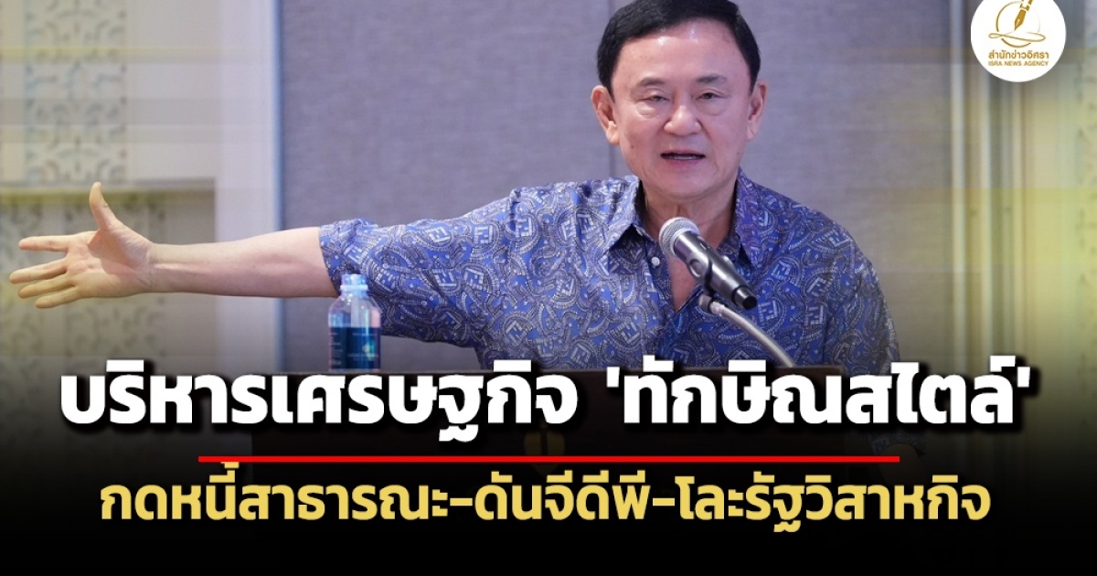 ‘ทักษิณ ชินวัตร’ อดีตนายกรัฐมนตรี แนะ ลดภาษีให้อเมริกา หลัง ‘โดนัลด์ ทรัมป์’ เตรียมตั้งกำแพงภาษี ปิ๊งไอเดีย Sandbox ภูเก็ต-หัวหิน ใช้บิทคอยน์ ลั่นเศรษฐกิจโตแน่ จีดีพี ปีหน้า 3.5 % ปี 69 ทะลุ 4 % แต่ไม่พอใจถ้าโตต่ำ 5 % ด้อยกว่าประเทศในอาเซียน โชว์กึ๋น ปี 68 กดหนี้สาธารณะ - ดันจีดีพี - โละรัฐวิสาหกิจแบกหนี้บักโกรก รีดส่วนเกิน-หั่นค่าไฟเหลือ 3.5 บาทต่อหน่วย รีดภาษีมูลค่าเพิ่ม-เก็บเงินธุรกิจใต้ดิน -ยกเลิก 3 G เปลี่ยนผ่านสู่ยุคดิจิทัล