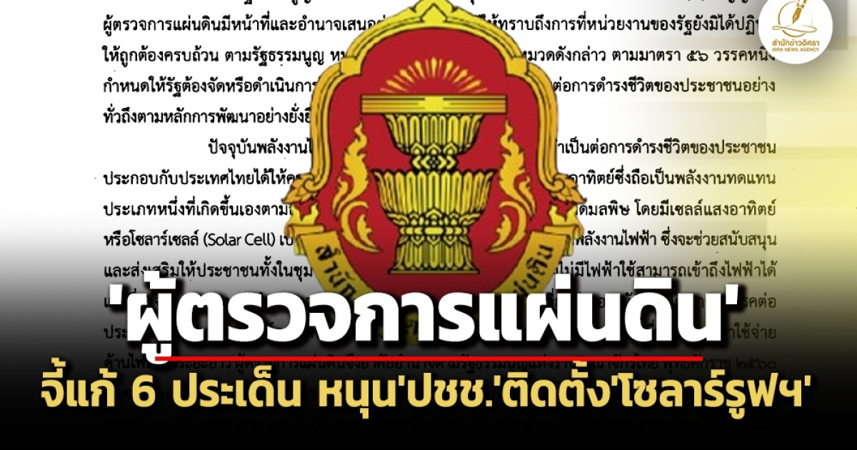 ‘ครม.’ รับข้อเสนอแนะ ‘ผู้ตรวจการแผ่นดิน’ จี้ ‘มหาดไทย-พลังงาน-กกพ.-สมอ.’ แก้ปัญหา 4 ประเด็นหลัก 6 ประเด็นย่อย สนับสนุน ‘ประชาชน’ ติดตั้ง ‘โซลาร์รูฟท็อป’