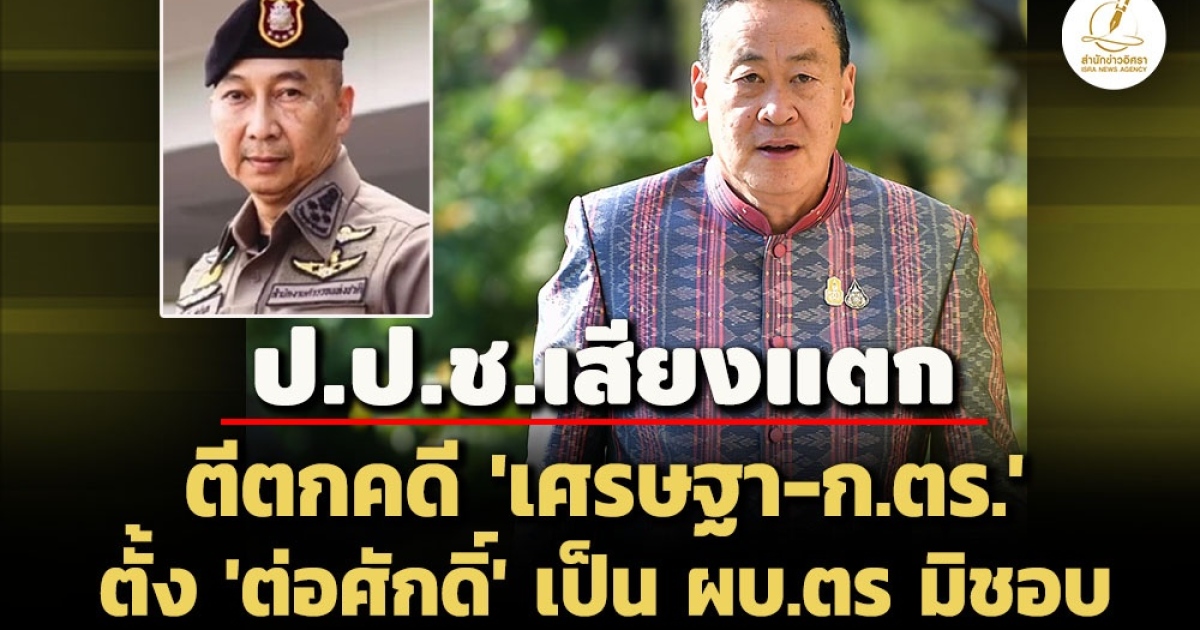ป.ป.ช.เสียงแตก ลงมติ 5 : 1 เสียง ตีตกคดีกล่าวหา 'เศรษฐา ทวีสิน อดีตนายกฯ -ก.ตร. เสนอชื่อแต่งตั้ง พล.ต.อ. ต่อศักดิ์ สุขวิมล เป็น ผบ.ตร มิชอบกม. ไม่คำนึงถึงอาวุโส-ความรู้ความสามารถ หลังไม่พบพฤติการณ์หลักฐานเพียงพอว่ามีเจตนาทุจริตเอื้อประโยชน์