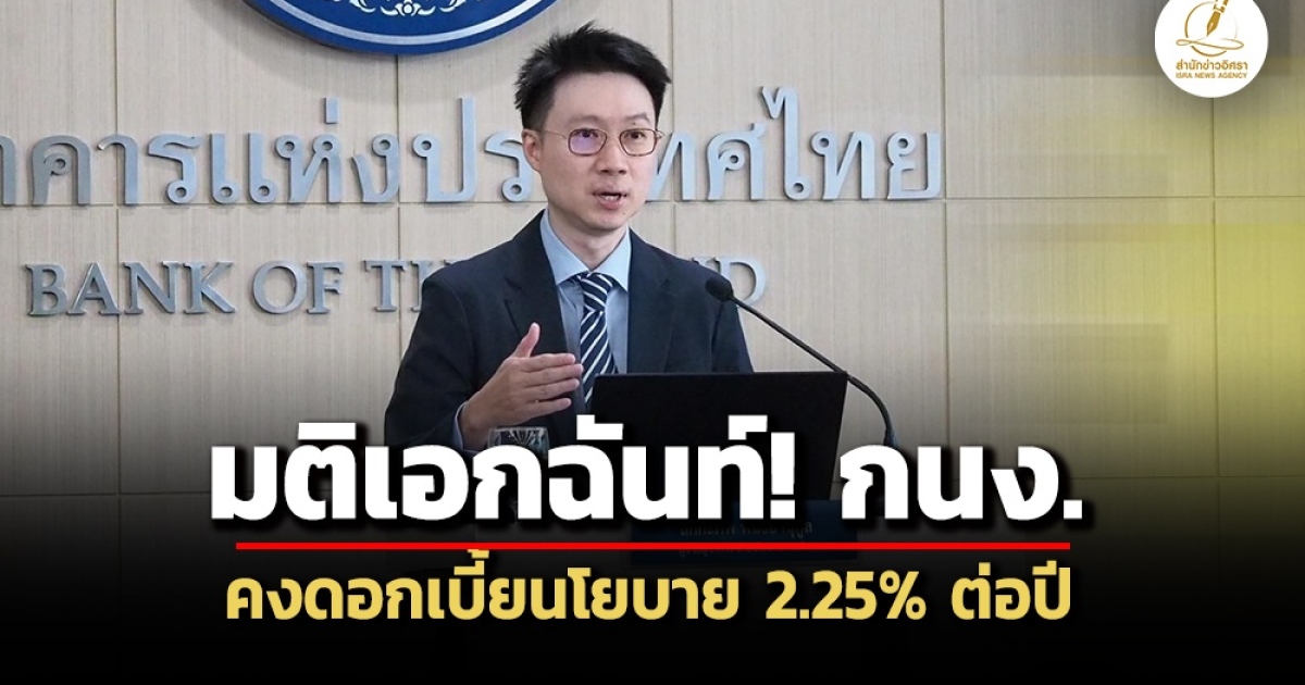 มติเอกฉันท์! กนง.คงดอกเบี้ยนโยบาย 2.5%-หั่นคาดการณ์จีดีพีปีนี้เหลือ 2.4%