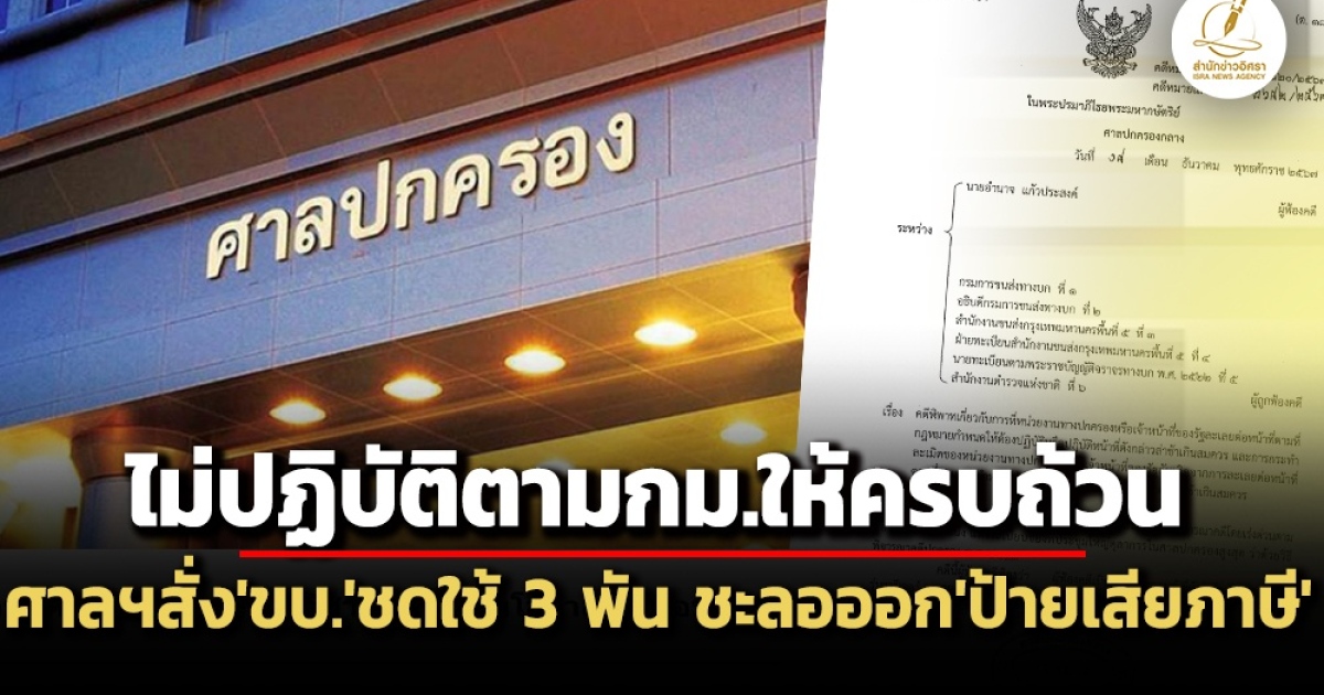 ‘ศาลปกครองกลาง’ สั่ง ‘กรมการขนส่งฯ’ ชดใช้สินไหมฯ 3 พันบาท ปมชะลอออก ‘ป้ายแสดงการเสียภาษี’ ให้ ‘ผู้ขับขี่’ ที่ค้างค่าปรับจราจร เหตุไม่มีหนังสือแจ้งการไม่ปฏิบัติตาม ‘ใบสั่ง’ ก่อน