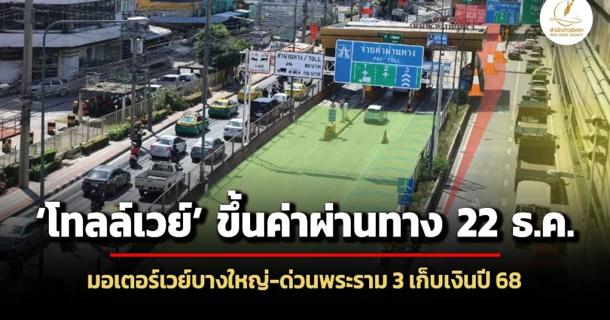 ทางด่วน-มอเตอร์เวย์สายเก่ายังไม่ขึ้นราคา เว้น ‘โทลล์เวย์’ ปรับขึ้นพรุ่งนี้ (22 ธ.ค. 67) ผู้บริหารแจงเป็นไปตามสัญญาโครงการ ‘ทางหลวง-การทางพิเศษฯ’ เล็งเปิดโครงการใหม่เก็บตังค์ทันทีปีหน้า ‘มอเตอร์เวย์บางใหญ่-ทางด่วนพระราม 3’