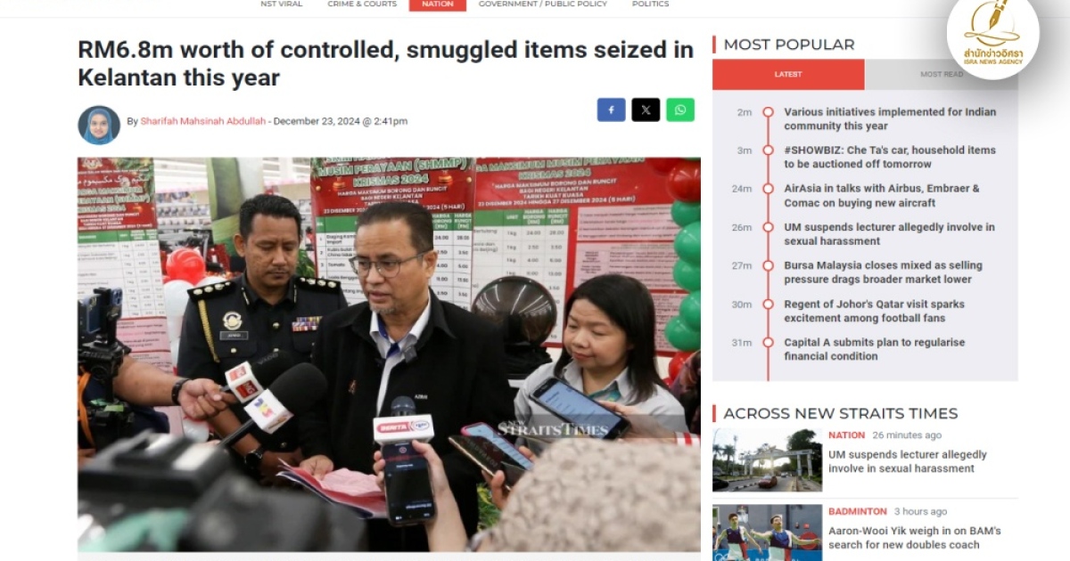 เรียบเรียงจาก:https://www.nst.com.my/news/nation/2024/12/1151983/rm68m-worth-controlled-smuggled-items-seized-kelantan-year