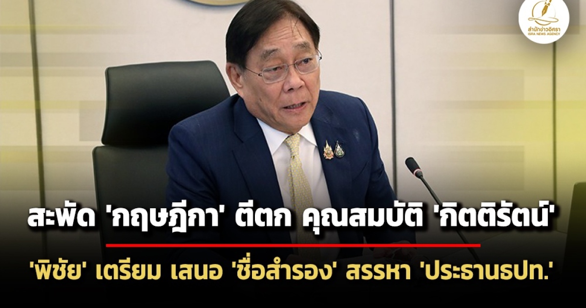 ‘พิชัย ชุณหวชิร’ รองนายกฯ-รมว.คลัง เผย ยังไม่ได้รับความเห็นกฤษฎีกา ตรวจสอบคุณสมบัติ ‘กิตติรัตน์ ณ ระนอง’ นั่ง ‘ประธานบอร์ดแบงก์ชาติ’ คาด 1-2 วัน ภายหลังเกิดกระแสข่าวแพร่สะพัด ‘กฤษฎีกา’ ให้ความเห็น ‘ขาดคุณสมบัติ’ เตรียมเสนอชื่อสรรหาใหม่
