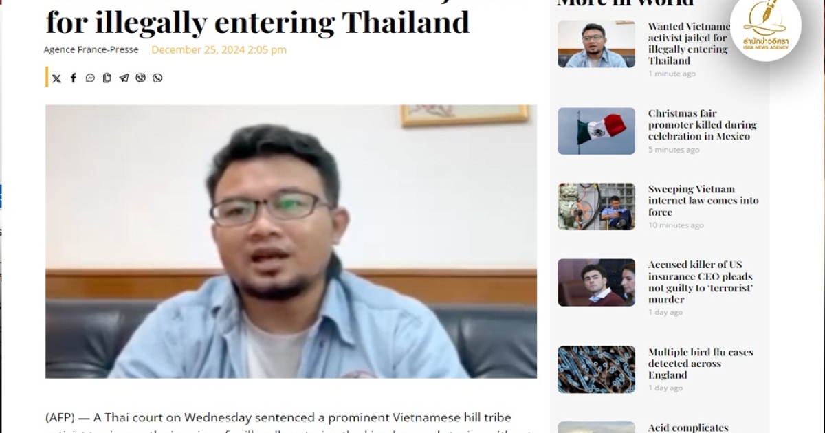 เรียบเรียงจาก:https://bnc.ph/wanted-vietnamese-activist-jailed-for-illegally-entering-thailand/world/