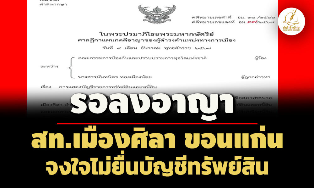 รองนายก อบต.หนองบัวใต้ หนองบัวลำภู ไม่ยื่นบัญชีฯ 2 ครั้ง จําคุก 2 เดือน ให้รอลงโทษ