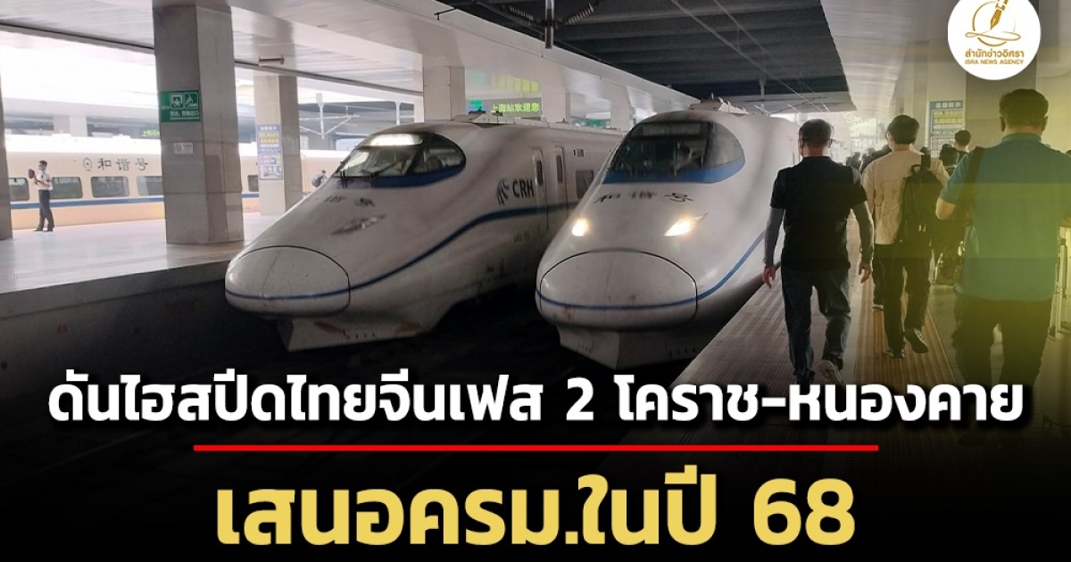 สำนักข่าวอิศรา (www.isranews.org) รายงานว่า วันที่ 30 ธันวาคม 2567 แหล่งข่าวจากกระทรวงคมนาคม เปิดเผยว่า ในปี 2568 นายสุริยะ จึงรุ่งเรืองกิจ รองนายกรัฐมนตรีและรัฐมนตรีว่าการกระทรวงคมนาคม จะผลักดันโครงการรถไฟความเร็วสูงไทยจีน ระยะที่ 2 ช่วงนครราชสีมา - หนองคาย ระยะทาง 357 กม. มูลค่าโครงการ 328,186.52 ล้านบาท