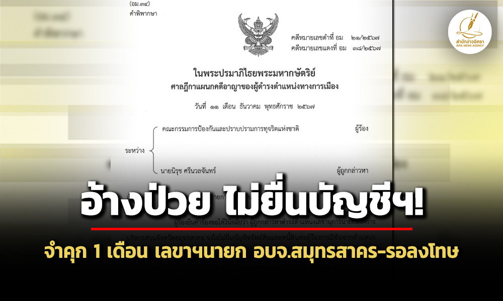 - รองนายก อบต.หนองบัวใต้ หนองบัวลำภู ไม่ยื่นบัญชีฯ 2 ครั้ง จําคุก 2 เดือน ให้รอลงโทษ