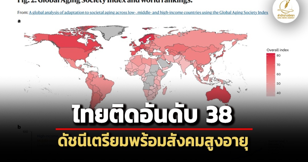 สำนักข่าวอิศรา (www.isranews.org) รายงานว่าเมื่อวันที่ 27 ธ.ค.ที่ผ่านมา มีการเผยแพร่ดัชนีว่าด้วยการเตรียมพร้อมสำหรับสังคมผู้สูงวัยหรือดัชนีผู้สูงวัย ซึ่งประเทศไทยได้อันดับที่ 38 และเป็นอันดับ 2 ของอาเซียนรองจากสิงคโปร์ โดยดัชนีนี้เผยแพร่ลงบนวารสาร Nature Aging มีผู้จัดทำดัชนีได้แก่มหาวิทยาลัยมหาวิทยาลัยโคลัมเบีย สหรัฐอเมริกา และมหาวิทยาลัยแห่งชาติสิงคโปร์ ดำเนินการวิเคราะห์ขีดความสามารถ 143 ประเทศทั่วโลกในการสนับสนุนสังคมผู้สูงอายุ