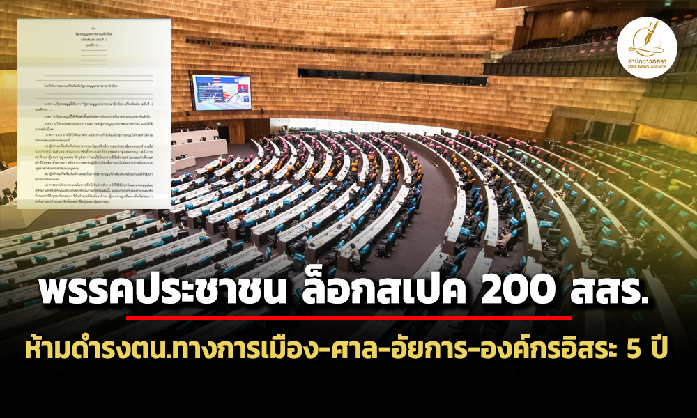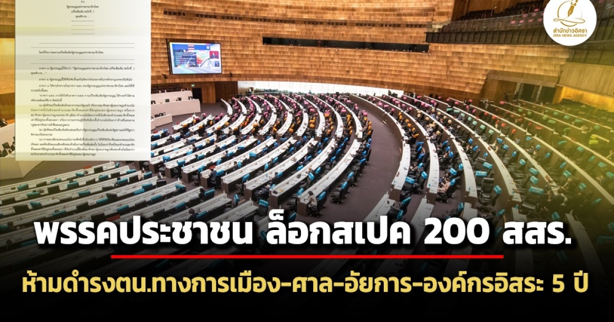 ร่างรัฐธรรมนูญ แก้ไขเพิ่มเติม ฉบับพรรคประชาชน เปิดทางเลือกตั้งสมาชิกสภาร่างรัฐธรรมนูญ 200 คน กำหนดคุณสมบัติ-ลักษณะต้องห้าม ไม่ให้บุคคลล้มละลาย เคยต้องคำพิพากษาคดีทุจริต-ร่ำรวยผิดปกติ อดีตนักการเมืองระดับชาติ-ท้องถิ่น-วุฒิสภา นั่ง สสร. - ห้ามดำรงตำแหน่ง นายกรัฐมนตรี สส.-สว-ผู้บริหารท้องถิ่น ศาล-องค์กรอิสระ-อัยการ 5 ปี