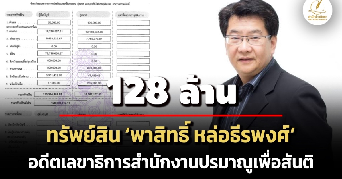 สำนักข่าวอิศรา (www.isranews.org) รายงานว่า เมื่อเร็ว ๆ นี้ สำนักงานคณะกรรมการการป้องกันและปราบการทุจริตแห่งชาติ (ป.ป.ช.) เปิดเผยบัญชีแสดงรายการทรัพย์สินและหนี้สินผู้ดำรงตำแหน่งระดับสูง ราย รองศาสตราจารย์ พาสิทธิ์ หล่อธีรพงศ์ เลขาธิการสำนักงานปรมาณูเพื่อสันติ และประธานกรรมการสถาบันวิจัยวิทยาศาสตร์และเทคโนโลยีแห่งประเทศไทย กรณีพ้นจากการเป็นเจ้าหน้าที่ของรัฐ เมื่อวันที่ 1 ต.ค. 2567