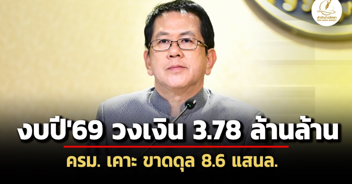 คณะรัฐมนตรี อนุมัติกรอบงบประมาณรายจ่ายประจำปี 2569 วงเงิน 3.78 ล้านล้านบาท ขาดดุล 8.6 แสนล้านบาท คาดจีดีพีโตเฉลี่ย 2.8 %