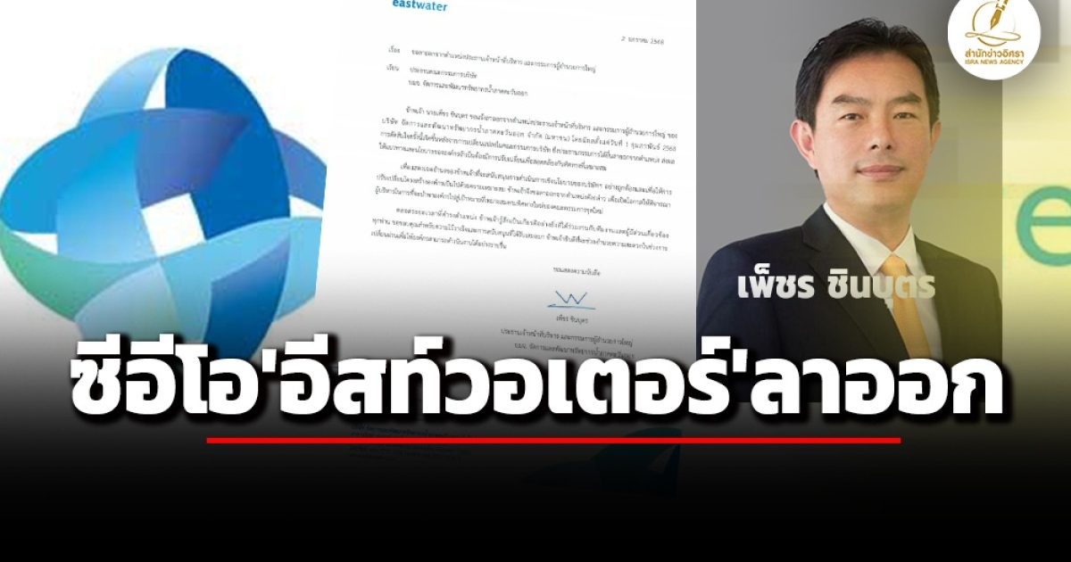 สำนักข่าวอิศรา (www.isranews.org) รายงานว่า เมื่อวันที่ 2 ม.ค.ที่ผ่านมา นายเพ็ชร ชินบุตร ประธานเจ้าหน้าที่บริหาร และกรรมการผู้อำนวยการใหญ่ บมจ.จัดการและพัฒนาทรัพยากรน้ำภาคตะวันออก (EASTW) หรือ อีสท์วอเตอร์ ได้ยื่นหนังสือถึงประธานคณะกรรมการบริษัท อีสท์วอเตอร์ ขอลาออกจากตำแหน่งประธานเจ้าหน้าที่บริหาร และกรรมการผู้อำนวยการใหญ่ อีสท์วอเตอร์ โดยมีผลตั้งแต่วันที่ 1 ก.พ.2568