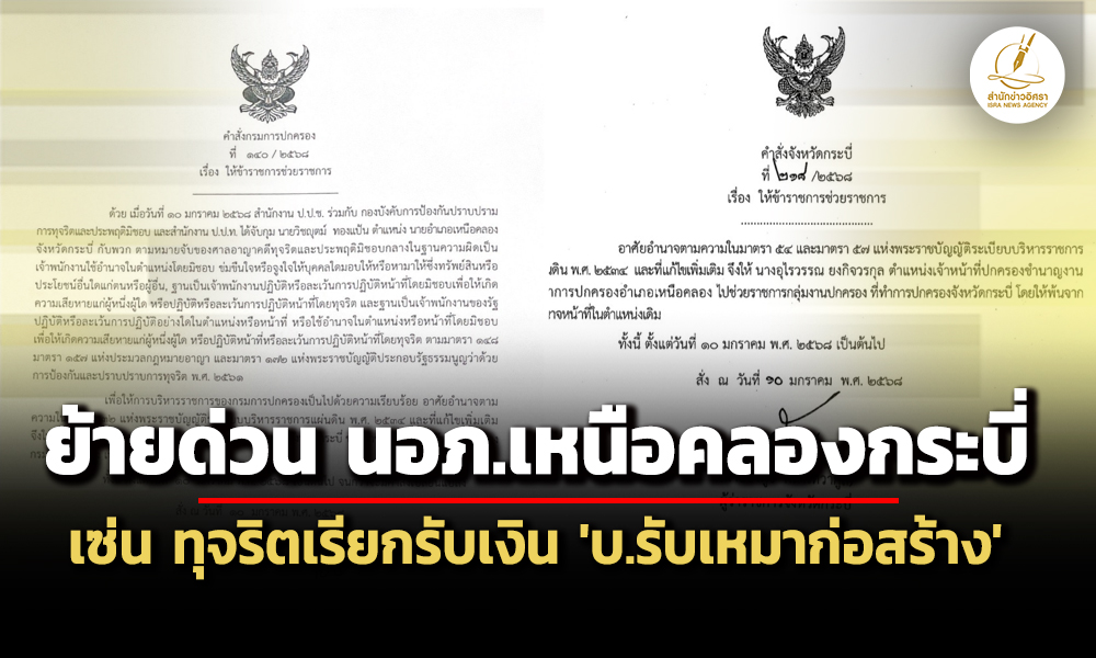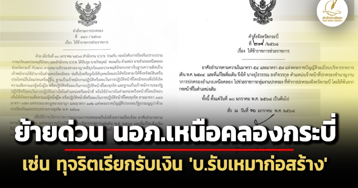 อ่านประกอบ : 3 ป. ซ้อนแผนจับกุม นอภ.เหนือคลองกระบี่-พวก ทุจริตเรียกเงิน-อธิบดีปค.สั่งย้ายด่วนแล้ว
