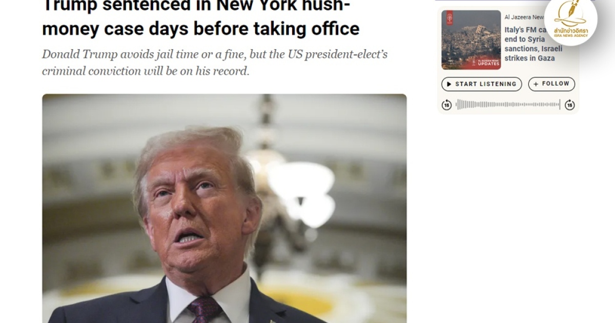 เรียบเรียงจาก:https://www.aljazeera.com/news/2025/1/10/trump-sentenced-in-new-york-hush-money-case-days-before-taking-office