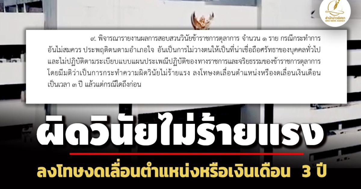 โดยมีมติว่าเป็นการกระทำความผิดวินัยไม่ร้ายแรง ลงโทษงดเลื่อนตำแหน่งหรืองดเลื่อนเงินเดือน เป็นเวลา 3 ปี แล้วแต่กรณีใดถึงก่อน