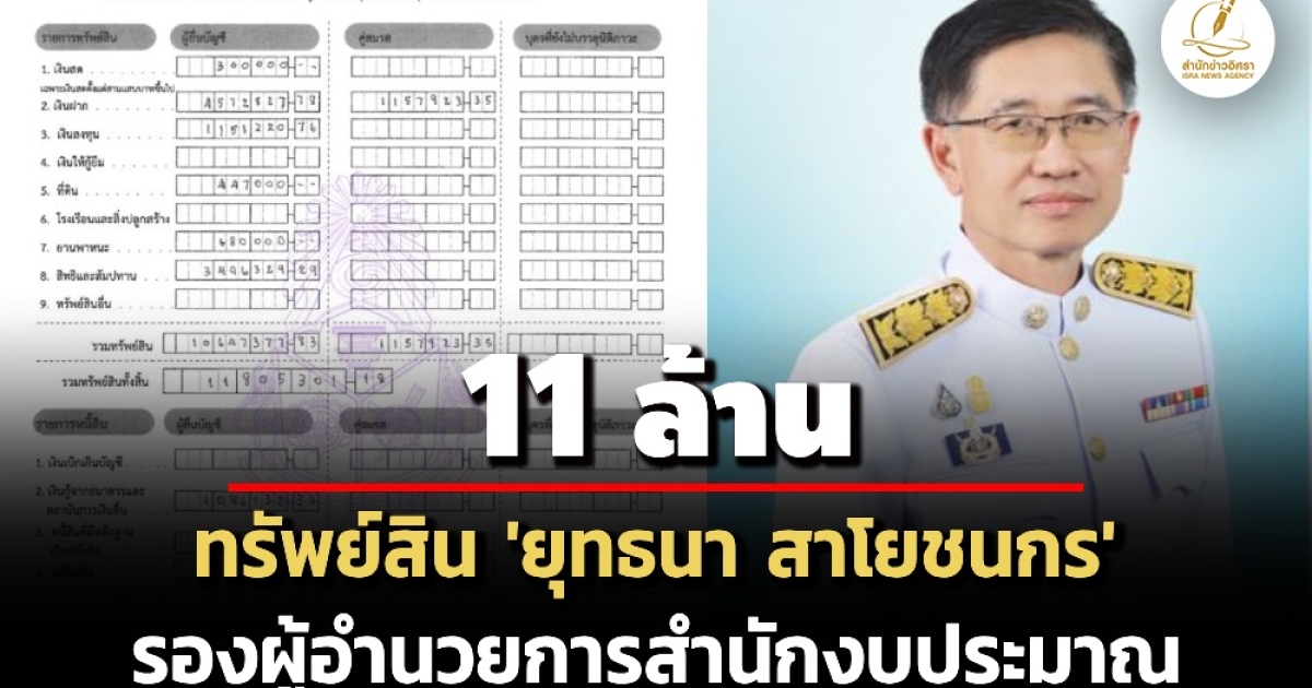 ป.ป.ช. เปิดทรัพย์สิน 'ยุทธนา สาโยชนกร' รองผู้อำนวยการสำนักงบประมาณ ทรัพย์สิน 11 ล. รายได้ 3.4 ล./ปี