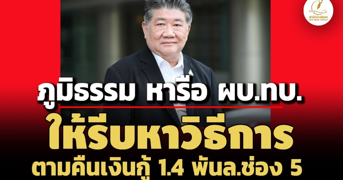 คืบหน้า! ปมปัญหาช่อง 5 ให้ บ.อาร์ทีเอฯ กู้ยืมเงิน 1,453 ล้าน ล่าสุด 'ภูมิธรรม เวชยชัย' รองนายกฯ-รมว.กลาโหม เผยอิศรา หารือ พล.อ.พนา แคล้วปลอดทุกข์ ผบ.ทบ.แล้ว ให้รีบดำเนินการดูวิธีทำอย่างไรได้บ้าง ติดตามเอาเงินคืนกลับมา อยู่ระหว่างรอรายงานเรื่อง ได้รายละเอียดชัดเจนจะชี้แจงอีกครั้ง