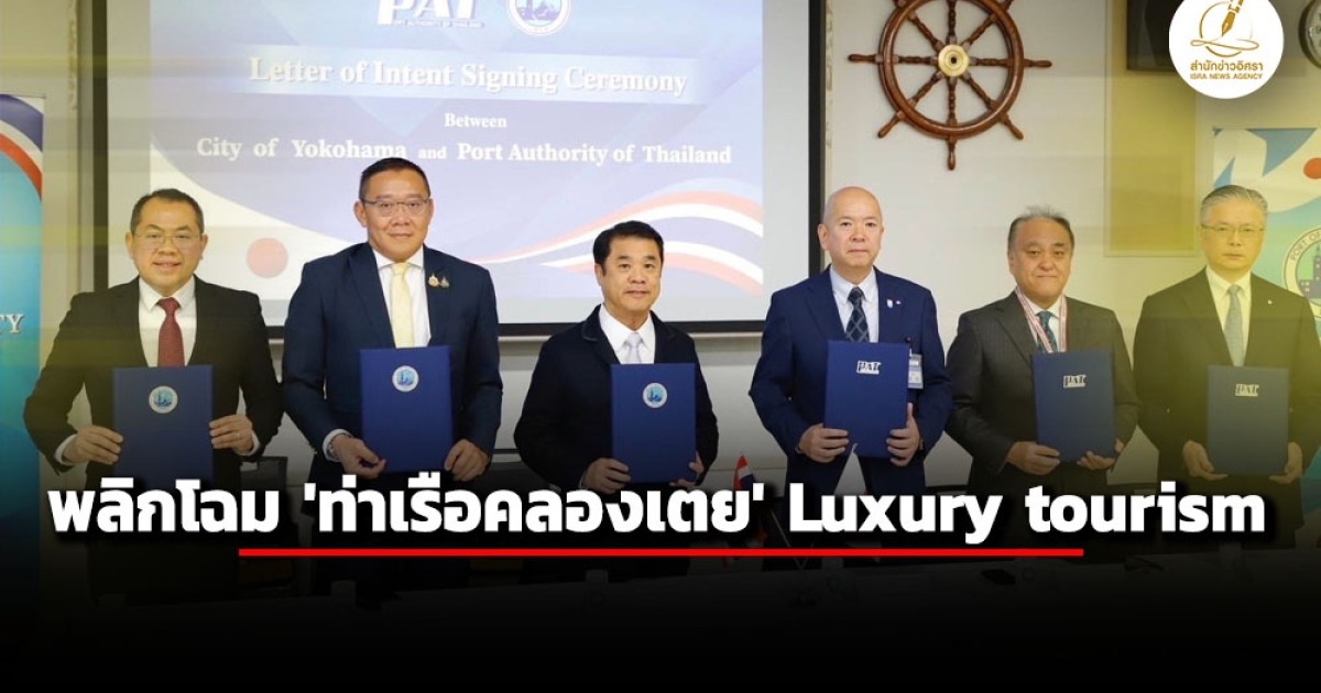 สุริยะ จึงรุ่งเรืองกิจ รองนายกรัฐมนตรี-รมว.คมนาคม ชยธรรม์ พรหมศร ปลัดกระทรวงคมนาคม เกรียงไกร ไชยศิริวงศ์สุข ผู้อำนวยการการท่าเรือแห่งประเทศไทย ยกคณะบอร์ดการท่าเรือฯ ร่วมลงนามแสดงเจตจำนงร่วมมือระหว่างการท่าเรือแห่งประเทศไทยกับเมืองโยโกฮามา ประเทศญี่ปุ่น ยกระดับเป็นศูนย์กลางการขนส่ง - พลิกโฉม ท่าเรือไทย เป็น Luxury tourism