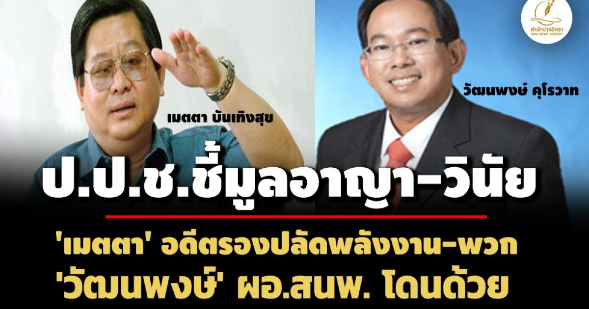 เผยมติ ป.ป.ช.ชี้มูลอาญา-วินัย 'เมตตา บันเทิงสุข' อดีตรองปลัดกระทรวงพลังงาน-พวก กรณีกล่าวหาดำเนินการโครงการกิจกรรมประชาสัมพันธ์เพื่อความมั่นคงด้านพลังงาน ปี 2549 มุ่งหมายมิให้มีการแข่งขันราคาอย่างเป็นธรรม เอื้อประโยชน์เอกชนรับงาน - 'วัฒนพงษ์ คุโรวาท' ผอ.สนพ. คนปัจจุบันโดนด้วย ส่งสำนวน อสส. ฟ้องร้องคดีตามขั้นตอนกม.-แจ้งผู้บังคับบัญชา ดำเนินการทางวินัยด้วย
