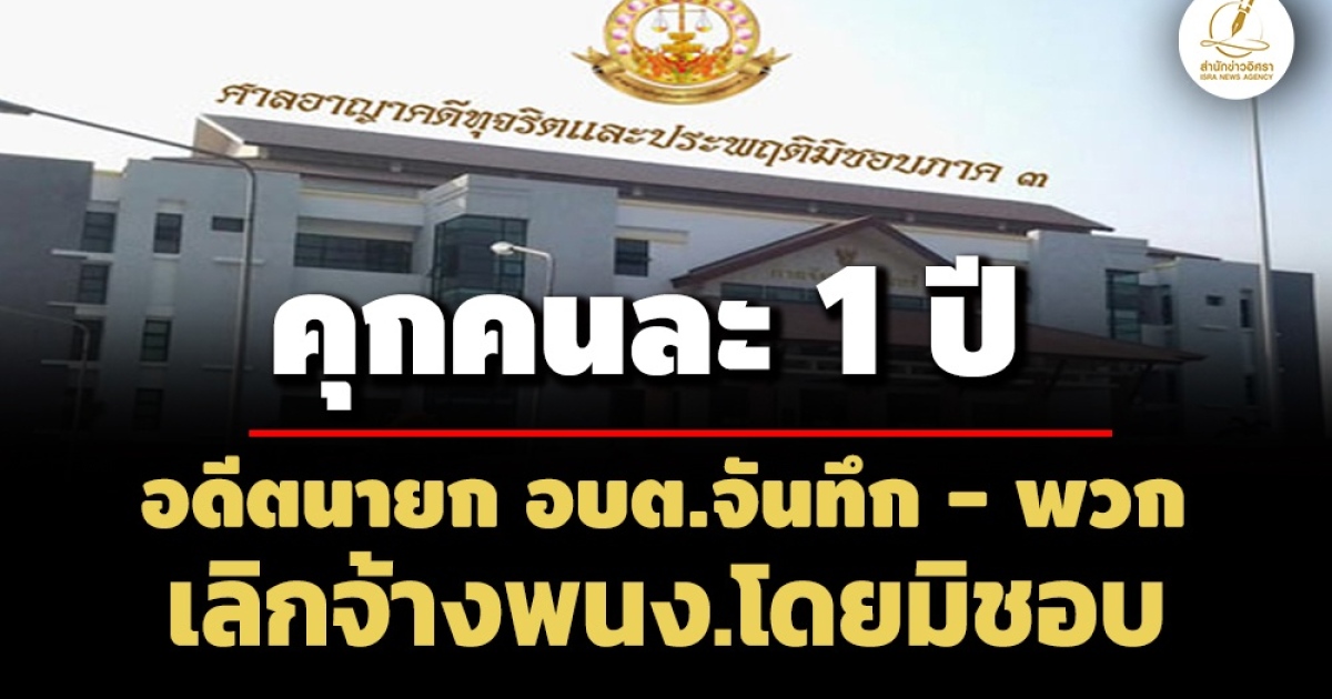 ป.ป.ช.เผยแพร่ความคืบหน้าผลคดีกล่าวหา 'เสวก ทวีคูณ' อดีตนายก อบต.จันทึก โคราช - พวก เลิกจ้างพนักงานจ้างตามภารกิจโดยมิชอบ ล่าสุด ศาลอาญาคดีทุจริตประพฤติมิชอบภาค 3 พิพากษาลงโทษจำคุกคนละ 1 ปี ไม่รอลงอาญา หลังรอดคุก 60 ปี คดีเบิกจ่ายเงินค่าน้ำมันเชื้อเพลิงให้รถยนต์ซึ่งมิใช่ของส่วนกลาง