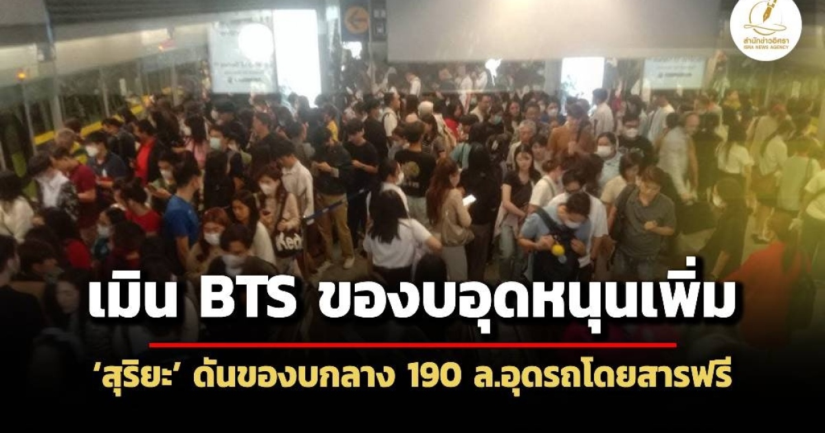 ‘สุริยะ’ เคาะตัวเลขสุดท้าย 190 ล้านบาท ขอครม.อนุมัติจากงบกลาง 4 ก.พ.นี้ เมิน BTS จ่อขอเงินอุดหนุนเพิ่ม ชี้ 133 ล้านบาทเหมาะสมแล้ว ด้านขสมก.สรุปคนขึ้นรถเมล์ฟรี 1 สัปดาห์ยอดพุ่ง 5 ล้านคน พบวันที่ 31 ม.ค. คนขึ้นรถเมล์ขสมก.ถึง 7 แสนคน
