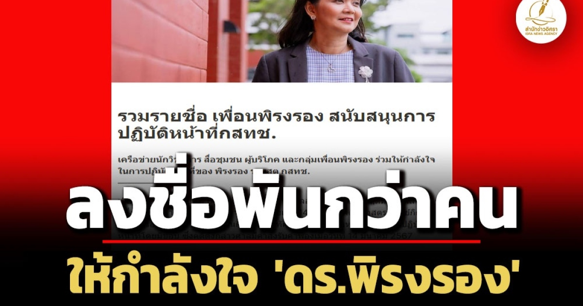 ทั้งนี้ ในการเปิดให้มีการรวมลงชื่อให้กำลังใจ สนับสนุนการปฏิบัติหน้าที่ ดร.พิรงรอง ดังกล่าว มีการระบุข้อความว่า
