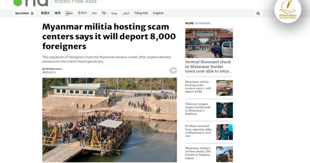 สำนักข่าวอิศรา (www.isranews.org) รายงานข่าวการปราบปรามกลุ่มสแกมเมอร์ริมพรมแดนไทยว่าสำนักข่าวเรดิโอฟรีเอเชียหรือ RFA ว่ากลุ่มกองกำลังพิทักษ์พรมแดนหรือ BGF ซึ่งเป็นกองกำลังชาติพันธุ์กะเหรี่ยงติดอาวุธมีจุดยืนโอนเอียงไปทางรัฐบาลทหารเมียนมาได้ดำเนินการปราบปรามอาชญากรรมฉ้อโกงริมชายแดนไทย โดยได้มีการออกแถลงการณ์ระบุว่าจะดำเนินการเนรเทศคนงานที่ทำงานในศูนย์ฉ้อโกงจำนวน 8 พันคนออกจากพื้นที่ ซึ่งคนงานจำนวนนี้ส่วนมากแล้วเป็นชาวจีน