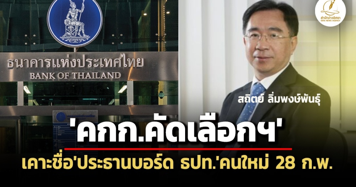 เมื่อวันที่ 20 ก.พ. แหล่งข่าวจากคณะกรรมการคัดเลือกประธานคณะกรรมการธนาคารแห่งประเทศไทย (ธปท.) เปิดเผยสำนักข่าวอิศรา (www.isranews.org) ว่า การประชุมคณะกรรมการคัดเลือกประธานบอร์ด ธปท. ที่มีนายสถิตย์ ลิ่มพงษ์พันธุ์ อดีตกระทรวงการคลัง เป็นประธานฯ ในวันที่ 28 ก.พ.2568 นั้น คาดว่าจะใช้เวลาพิจารณาไม่นาน และสามารถลงมติเลือกประธานคณะกรรมการ ธปท. ได้เลย จากนั้นจะมีการจัดทำรายงานการประชุมฯให้เสร็จสิ้นภายในวันเดียวกัน และให้คณะกรรมการคัดเลือกฯ ลงนาม