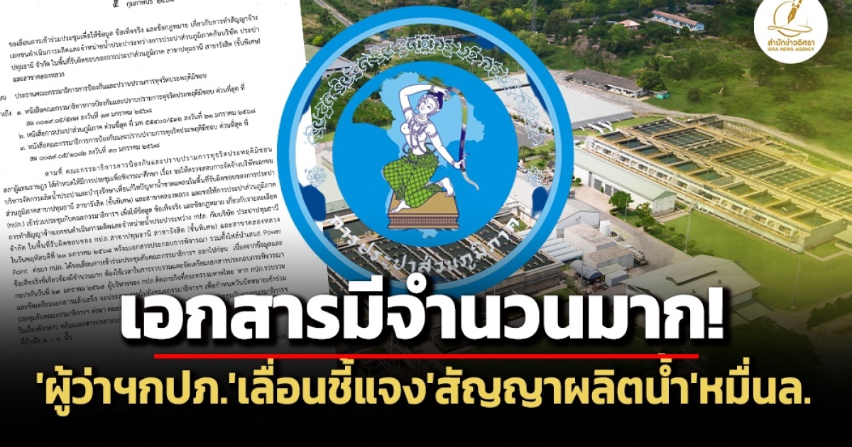 คำชี้แจง'กปภ.'! ปมต่อสัญญาซื้อน้ำ‘บ.ประปาปทุมฯ' 20 ปี-'มท.’ขอตัว‘คนค้าน’ช่วยราชการฯ