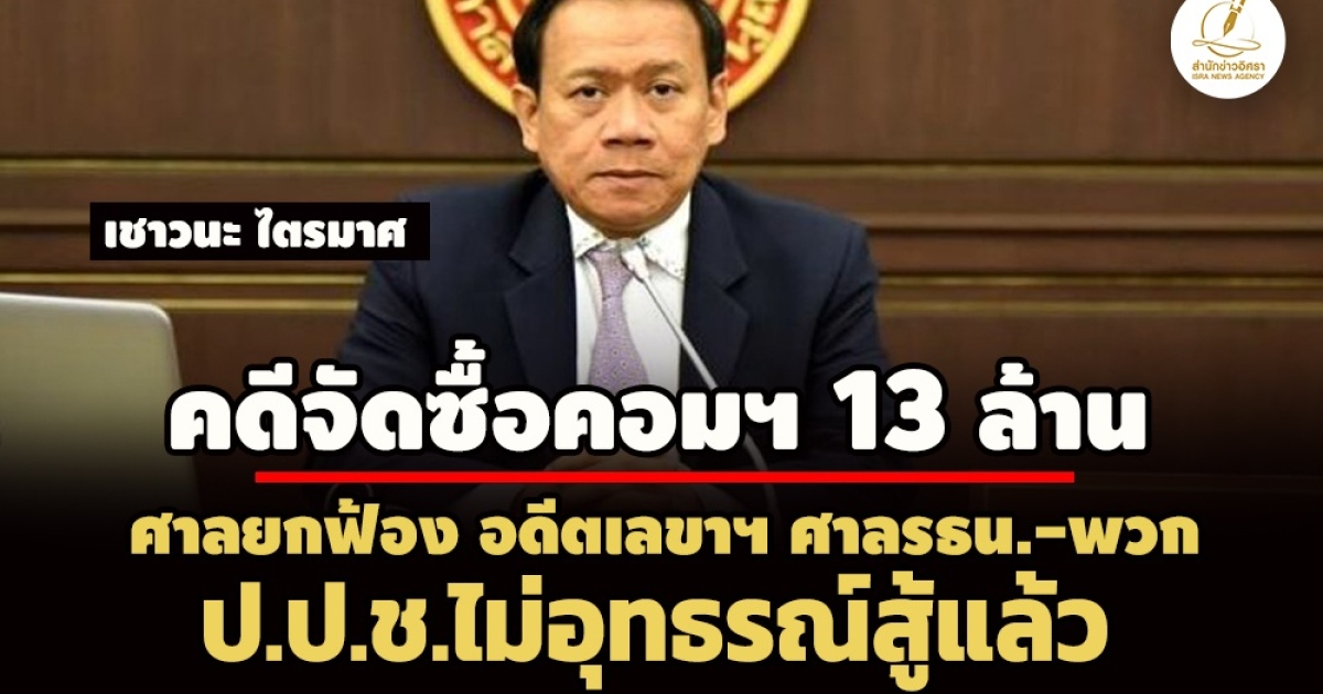 สำนักข่าวอิศรา (www.isranews.org) รายงานว่า เมื่อวันที่ 3 มี.ค.2568 ที่ประชุมคณะกรรมการป้องกันและปราบปรามการทุจริตแห่งชาติ (ป.ป.ช.) มีมติ 4 ต่อ เสียง ไม่อุทธรณ์คำพิพากษาศาลอาญาคดีทุจริตและประพฤติมิชอบกลาง ที่พิพากษายกฟ้อง นายเชาวนะ ไตรมาศ อดีตเลขาธิการสำนักงานศาลรัฐธรรมนูญ และพวก กรณีกล่าวหาเอื้อประโยชน์ให้กับผู้เสนอราคาเกี่ยวกับการจัดซื้อคอมพิวเตอร์ จำนวน 281 เครื่อง ของสำนักงานศาลรัฐธรรมนูญ มูลค่า 13 ล้านบาทเศษ