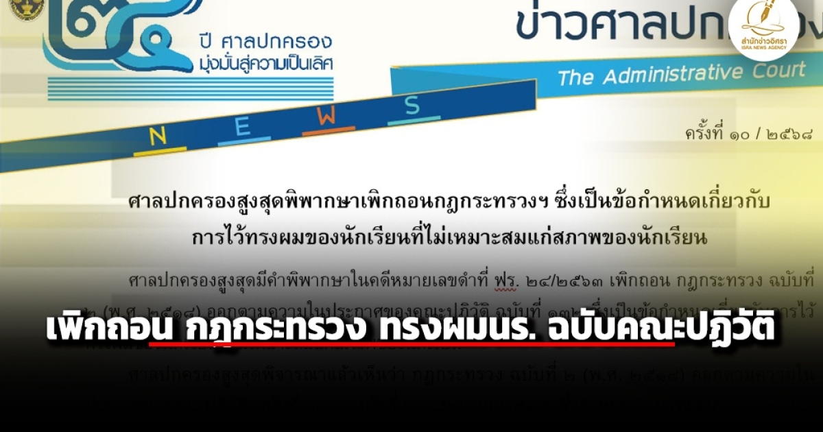 สำนักข่าวอิศรา (www.isranews.org) รายงานว่า วันที่ 5 มีนาคม 2568 สำนักงานศาลปกครอง เผยแพร่เอกสารข่าวศาลปกครอง เกี่ยวกับคำพิพากษาศาลปกครองสูงสุดพิพากษาเพิกถอนกฎกระทรวง ฉบับที่ 2 (พ.ศ. 2518) ออกตามความในประกาศของคณะปฏิวัติ ฉบับที่ 132 ซึ่งเป็นข้อกำหนดเกี่ยวกับการไว้ทรงผมของนักเรียนที่ไม่เหมาะสมแก่สภาพของนักเรียน เนื่องจากวินิจฉัยแล้วเห็นว่า กฎกระทรวงดังกล่าว เป็นการจำกัดเสรีภาพในร่างกายของบุคคลเกินสมควรแก่เหตุ ขัดรัฐธรรมนูญมาตรา 26 วรรคหนึ่ง โดยระบุรายละเอียดทั้งหมด ดังนี้